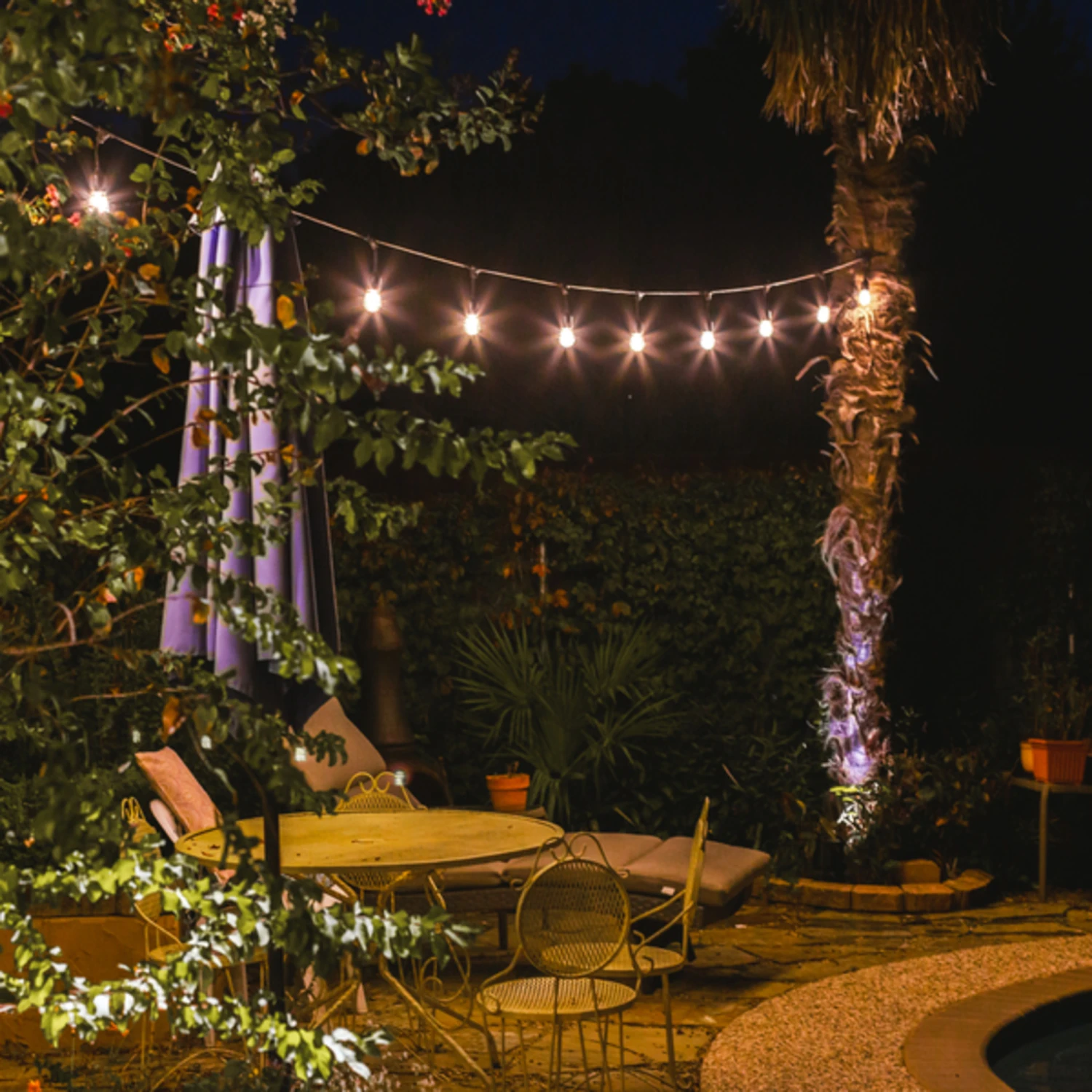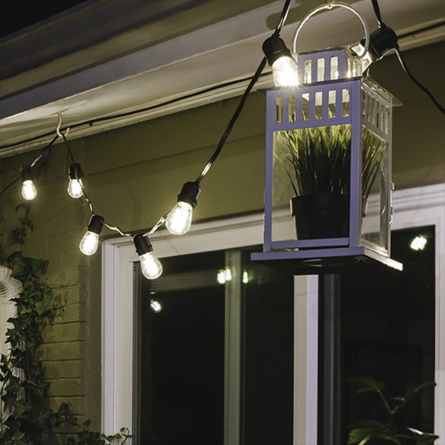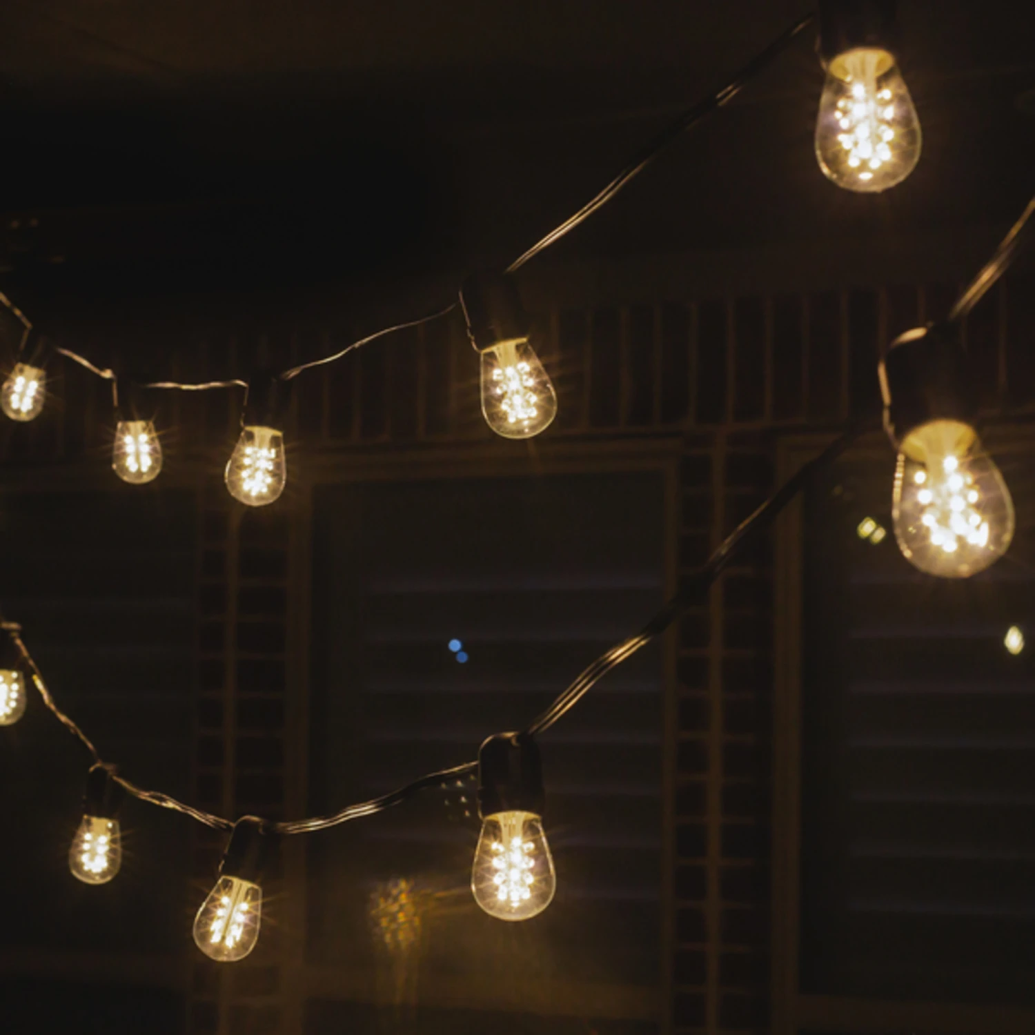 Decorate large event spaces easily and efficiently with this kit that includes 25 energy-saving LED S14 bulbs and a durable 52 ft. patio string light.