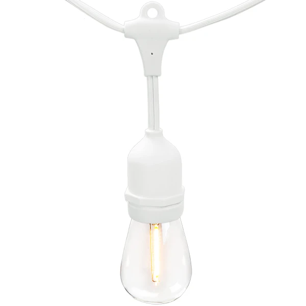 Create an elegant outdoor setting with this white wire 52-foot PLT Solutions light stringer.