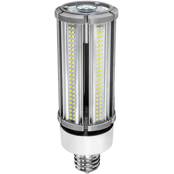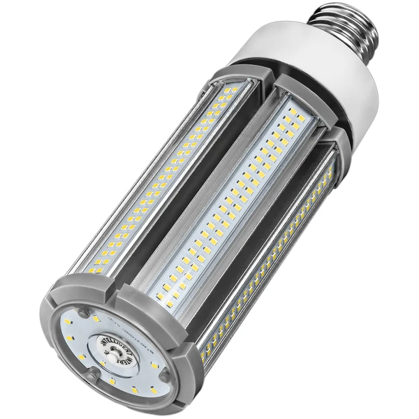 Illuminate indoor industrial and outdoor spaces without the hassle of traditional HID bulbs using this 4000 Kelvin corn bulb by TCP. At 9,450 lumens, this LED bulb is ideal for large spaces that need ultra-bright lighting, including post tops, warehouses, canopy fixtures, and parking lots. It requires no ballast due it its isolated driver and includes 4kV surge protection. With 50,000 life hours, it outlasts and uses 85% less energy than traditional metal halide lamps. Retrofit your most-used fixtures with this 300-watt metal halide equal LED lamp for cost-saving and high-efficacy lighting.